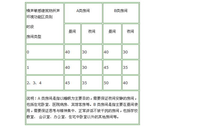當固定設備排放的噪聲通過建筑物結構傳播至噪聲敏感建筑物室內時,噪聲敏感建筑物室內等效聲級不得超過表 2 和表 3 規定的限值。